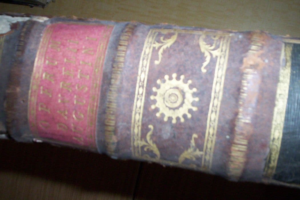 manuscrit : Oeuvres de saint Augustin et index, trois volumes reliés cuir et dorés