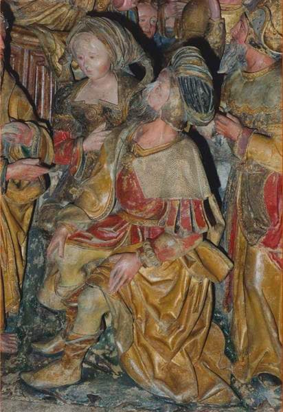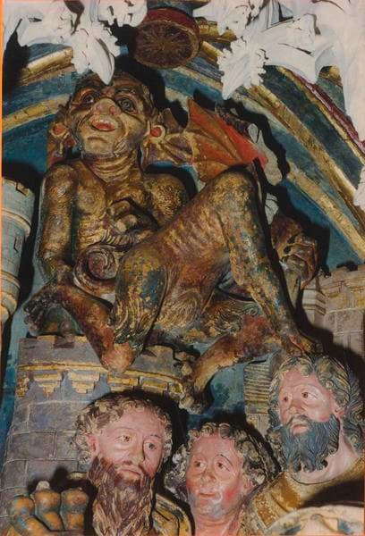 Ces bas-reliefs constituent une suite de quatre scènes : Philetus gagné par la parole de l'apôtre, Philetus délivré par l'imposition du manteau, Saint Jacques commande aux diables de garotter Hermogène, Hermogène délivré par saint Jacques.