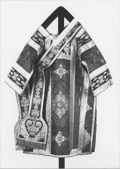 POP | Plateforme ouverte du patrimoineornements dits du sacre de Charles X : 2 chasubles, 8 dalmatiques, 3 étoles, 4 manipules, 2 voiles de calice, 2 bourses de corporal, pale, grémial, voile huméral, napperon liturgique, voile d'exposition du saint sacrement (pavillon du saint sacrement)