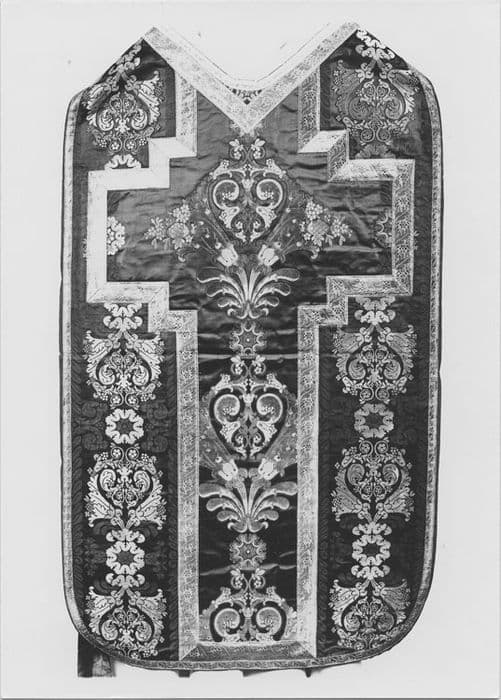 chasuble (2) ; dalmatique (8) ; étole de clerc (3) ; manipule (4) ; voile de calice (2) ; bourse de corporal (2) ; pale ; grémial ; voile huméral ; napperon liturgique ; voile d'exposition du saint sacrement