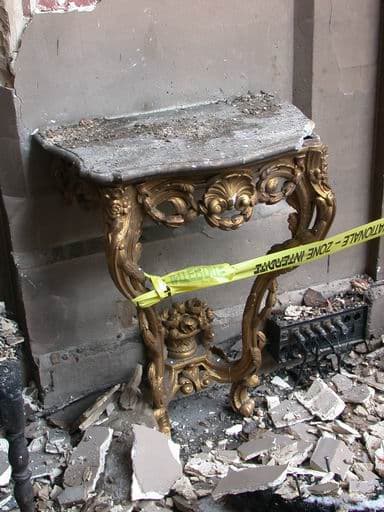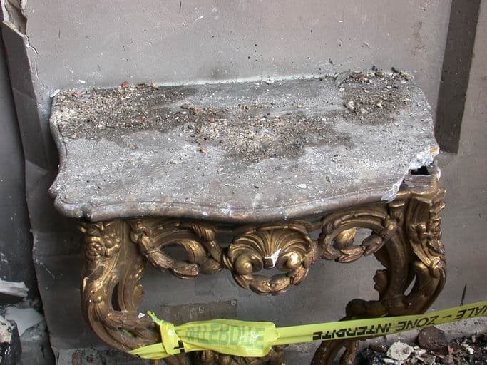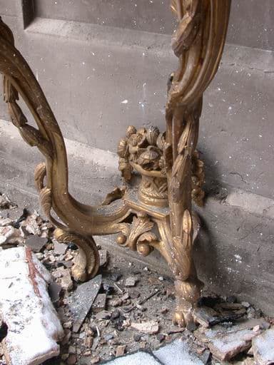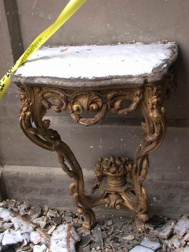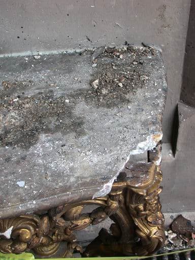 Consoles en bois peint, avec plateau en marbre rouge veiné de blanc.
