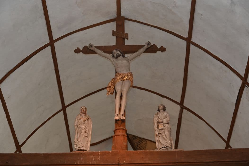 trois statues de la poutre de gloire : Christ, Vierge et saint Jean