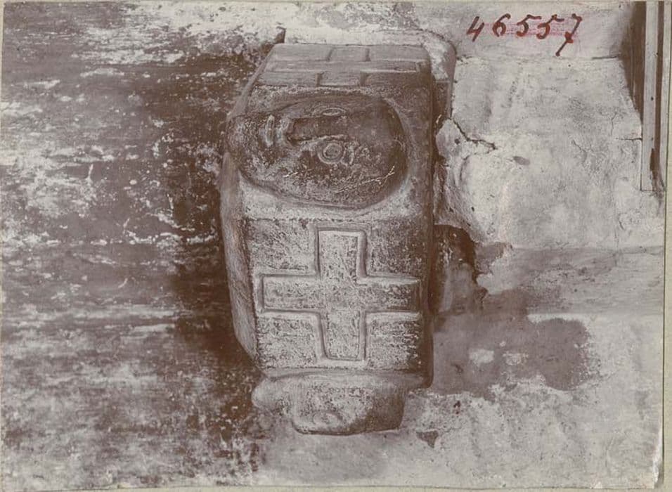 figure (homme : tête) ; figure (femme : tête) ; ornementation (croix grecque)