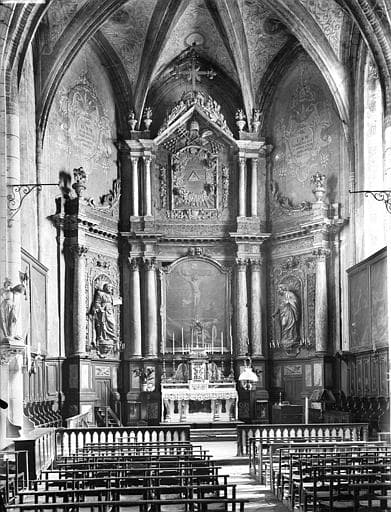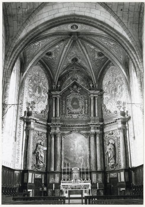 POP | Plateforme ouverte du patrimoineretable, tableau, 2 statues (retable architecturé à niche) : la Crucifixion, saint Pierre, saint Paul, du maître-autel