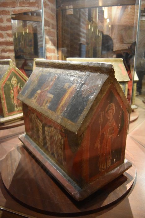 figure (Vierge à l'Enfant) ; scène biblique (Annonciation) ; scène biblique (Nativité) ; scène biblique (Adoration des Mages) ; scène biblique (Mort de la Vierge) ; scène biblique (Cène) ; scène biblique (Baiser de Judas) ; scène biblique (Flagellation du Christ) ; scène biblique (Montée au Calvaire)
