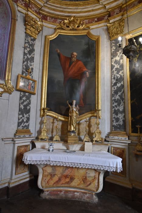 lambris de revêtement ; autel (3) ; retable (3) ; chaire à prêcher ; tribune