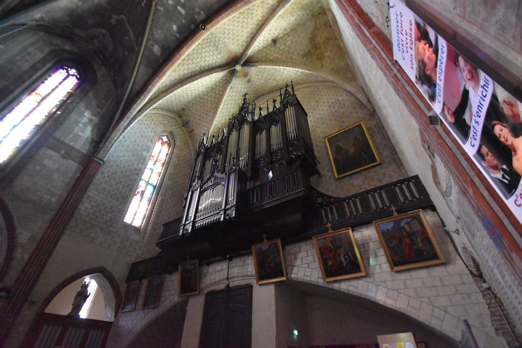 Le buffet de style néo-gothique est constitué d'un grand corps à 3 tourelles et d'un positif de dos à 2 tourelles.