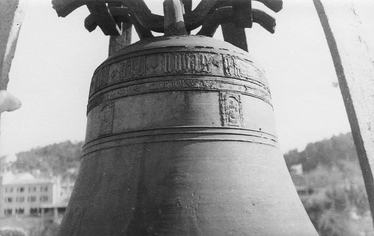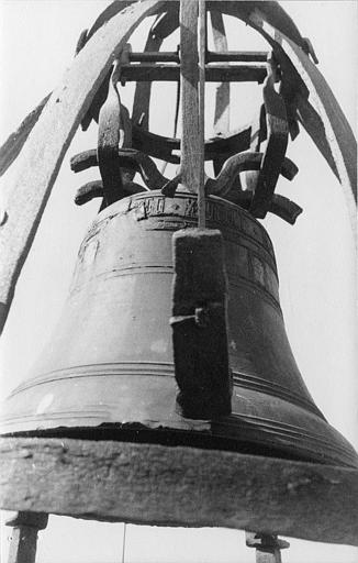 Inscription en caractères gothiques au cerveau : M..CCXXVIIII. S MARCELLE ORA PRO NOBIS. Inscription sur la gorge alternée et répétée quatre fois : AVE MARIA TE DV LAVDAMS.