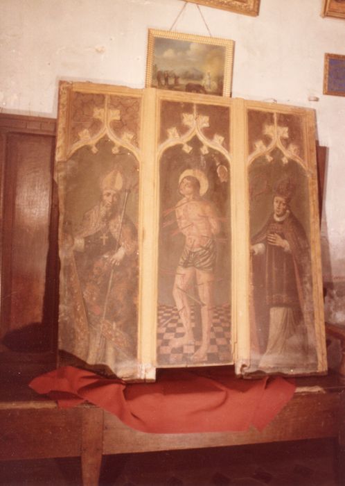 retable (triptyque) et tableaux : Saint Sébastien, Saint Clair, Un évêque