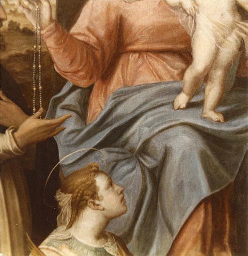 tableau : Vierge du Rosaire avec saint Dominique, sainte Catherine de Sienne et sainte Lucie