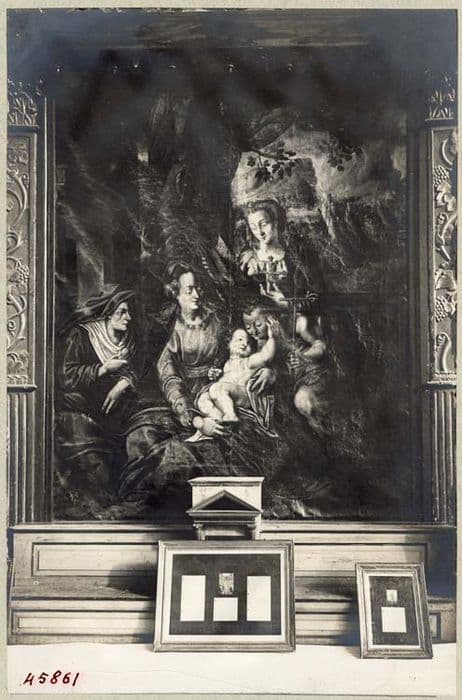 tableau : Sainte Anne, la Vierge à l'Enfant, sainte Elisabeth et saint Jean-Baptiste sous les traits de donateurs