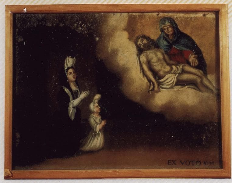ex-voto 25 : Femme aristocrate et son jeune enfant en action de grâce devant Notre-Dame-de-Pitié