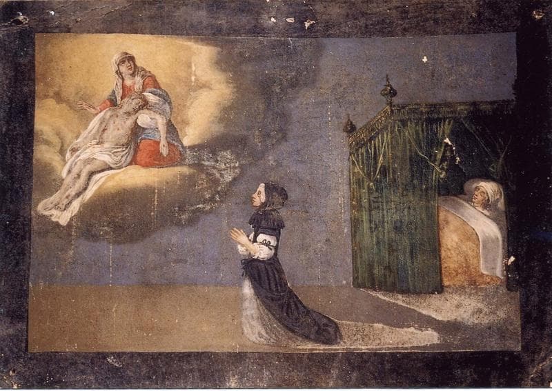 ex-voto 39 : Guérison d'un malade. Femme en prière devant Notre-Dame-de-Pitié