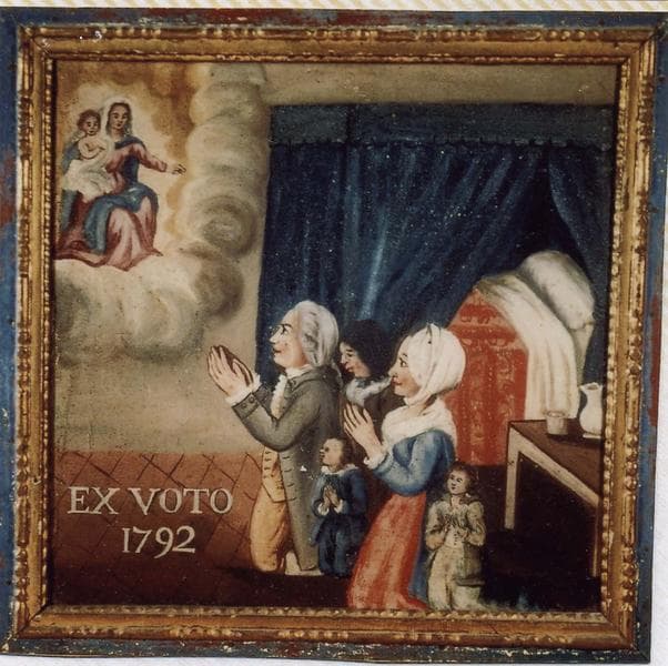 ex-voto 54 : Famille en prière devant la Vierge à l'enfant