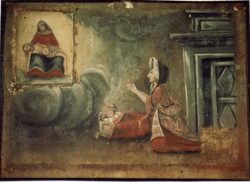 ex-voto 63 : Guérison d'un enfant dans un berceau. Remerciement à Notre-Dame-de-Pitié