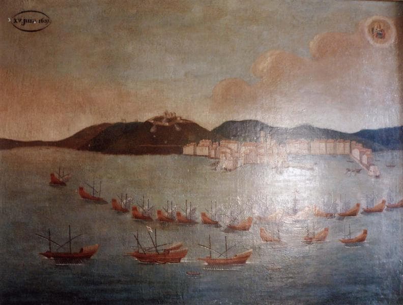 POP | Plateforme ouverte du patrimoineex-voto 105 avec cadre : Bataille des Espagnols (Attaque de le flotte française)