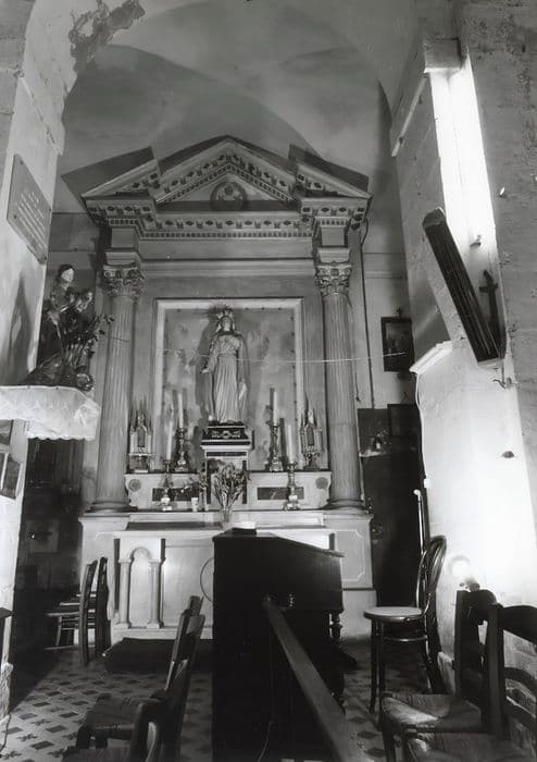 Retable à deux colonnes corinthiennes cannelées, soutenant un fronton triangulaire à décrochement. L'autel-tombeau, de plan rectangulaire, est précédé par des colonnettes jumelées.