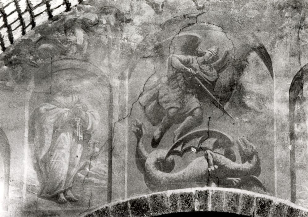 peintures monumentales : Saint Michel entre Saint Pierre et Saint Paul