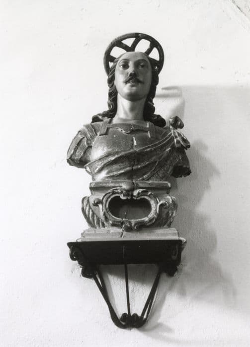 Le saint, auréolé, est vêtu en soldat romain.