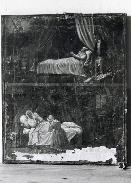 Deux scènes représentées : personnages alités.