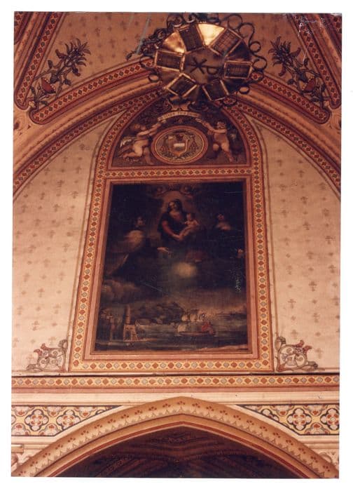 Vierge à l'Enfant ; sainte Thérèse ; saint Charles Borromée ; ville ; bateau