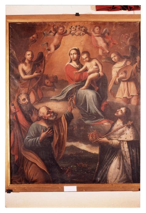 tableau : Vierge à l'Enfant, Saint Pierre, Saint Paul et des anges montés aux cieux