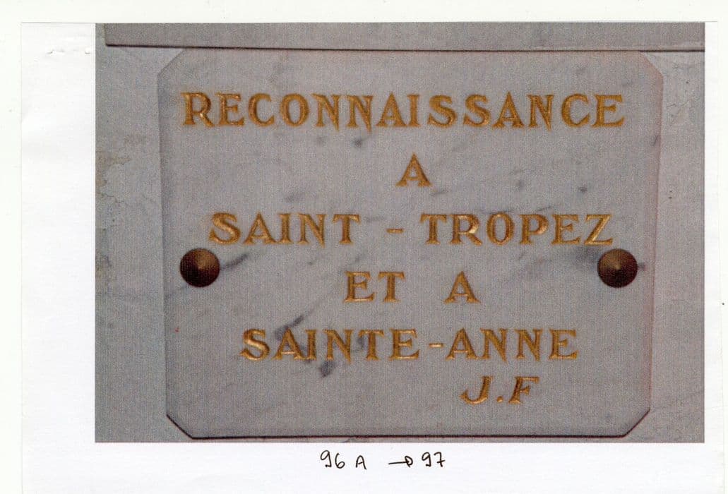 Plaque de marbre (ex-voto n°97) : Reconnaissance à Saint Tropez et à Sainte Anne