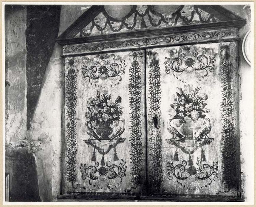 Portes d''armoire décorées de peintures. L'armoire servait à contenir les bustes de saint Elzéar et sainte Delphine.