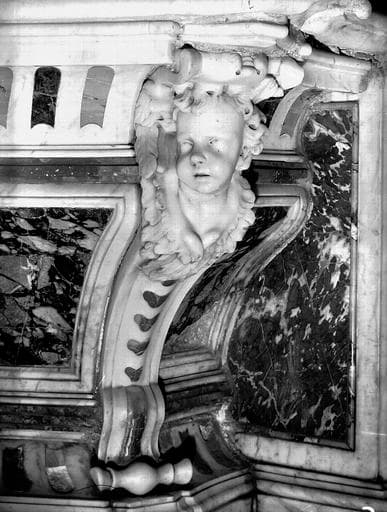 Autel en marbre de Carrare orné de chaque côté de deux anges agenouillés.