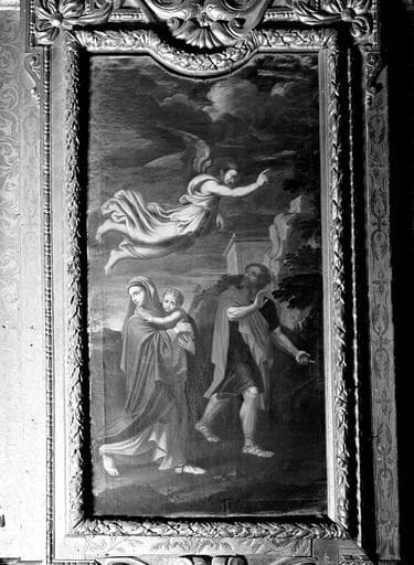 POP | Plateforme ouverte du patrimoine3e chapelle nord : autel, retable, tableau : les Docteurs de l'Eglise, lambris de revêtement contenant 6 tableaux : Saint Joseph, l'Annonciation, la Visitation, la Circoncision, la Fuite en Egypte, et peinture de la voûte : Le Père Eternel