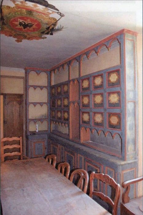 Boiseries formées de panneaux découpés, moulurés et peints.