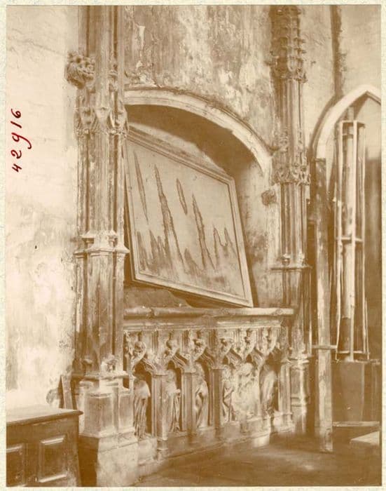 Le tombeau est orné d'arcatures ogivales, dans chacune desquelles figure une statuette de moines (mutilées). Du gisant, il ne reste plus que des traces.