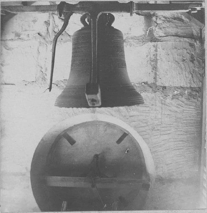 Cloche servant de timbre d'horloge. Monogramme IHS dans une gloire.