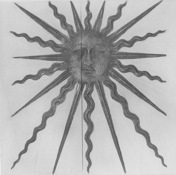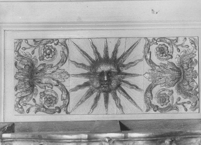 Quatorze fragments de boiserie provenant du château de Chambord, décorés de soleils rayonnants.