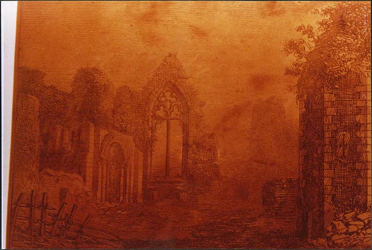 plaque d'impression : Cour intérieure du château de Mervent dessiné en 1838