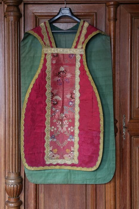 POP | Plateforme ouverte du patrimoinechasuble, étole de clerc, manipule, voile de calice, bourse de corporal (ornement rouge)