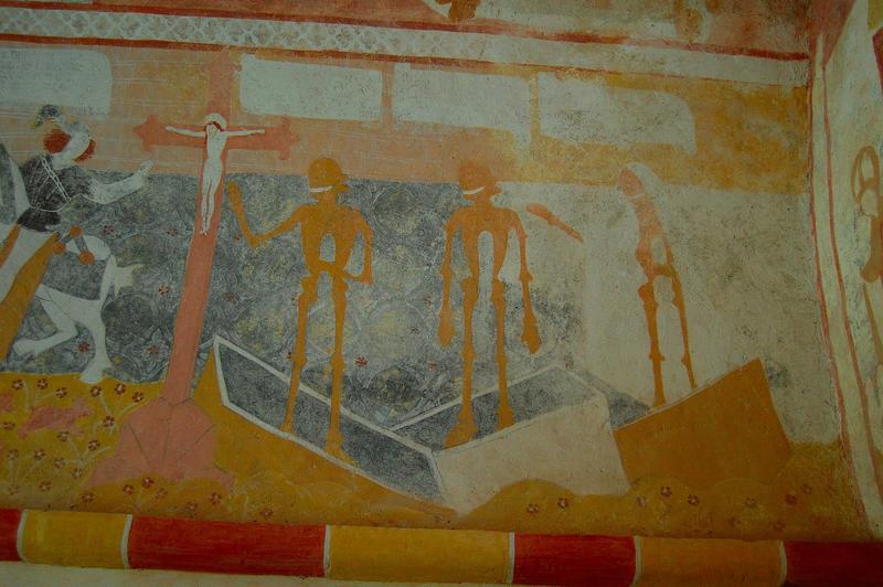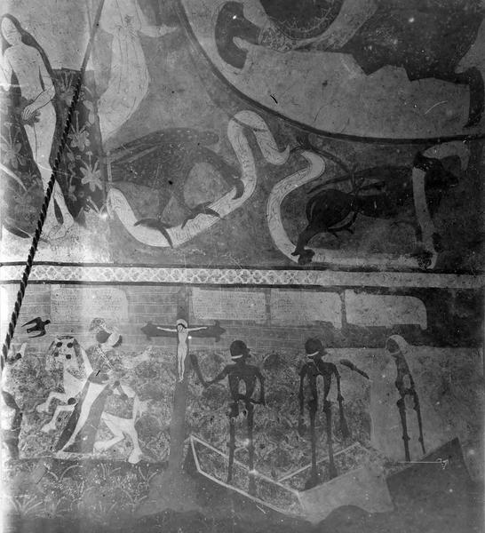peintures murales : Création, tentation, Jean de Moussay et Pernelle Ebrard, Jugement, Annonciation, Nativité, Annonce aux bergers, Adoration des Mages