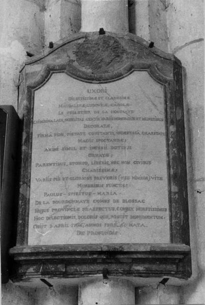 plaque funéraire, de Madeleine L.C.Le Pelletier de la Houssaye