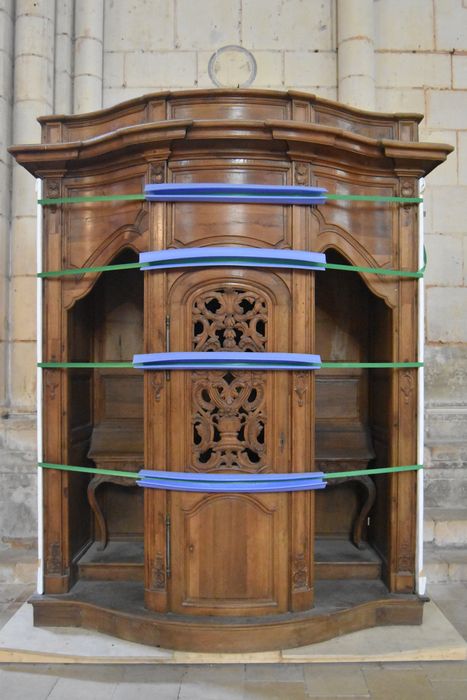 Ces confessionnaux ont d'abord été en bois naturel, puis peints en vert olive, puis repeints en bronze artistique et enfin en faux bois.