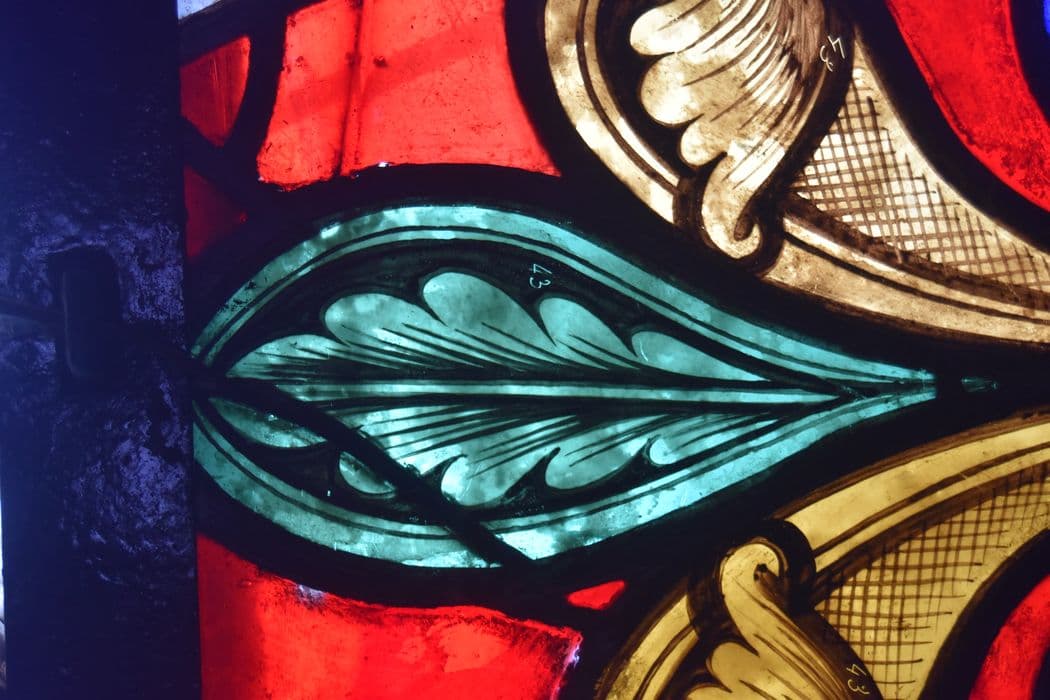 3 verrières : rédemption, Crucifixion, Résurrection, Ascension, Jugement et martyre de saint Pierre et saint Paul, Descente du Saint-Esprit, saint Pierre prêchant, saint Pierre et saint Jean bénissant la foule, résurrection de Tabitha, saint Pierre libéré de prison, chute de Simon le Magicien, saint Pierre et saint Paul comparaissant devant l'empereur, Jésus portant sa croix, saint Laurent amené devant un prince et des soldats, saint Laurent devant ses juges, un juge et le saint devant un prince et une foule de pauvres, visite du Christ à la prison du saint, le martyre de saint Laurent, l'enterrement de saint Laurent, le tombeau du diacre (baies 0, 1, 2)
