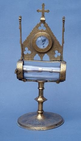 reliquaire-monstrance ostensoir (reliquaire pédiculé à monstrance cylindrique horizontale et lunette)