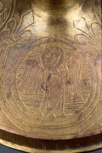 cuivre : moulé, ajouré, gravé, doré ; cristal de roche