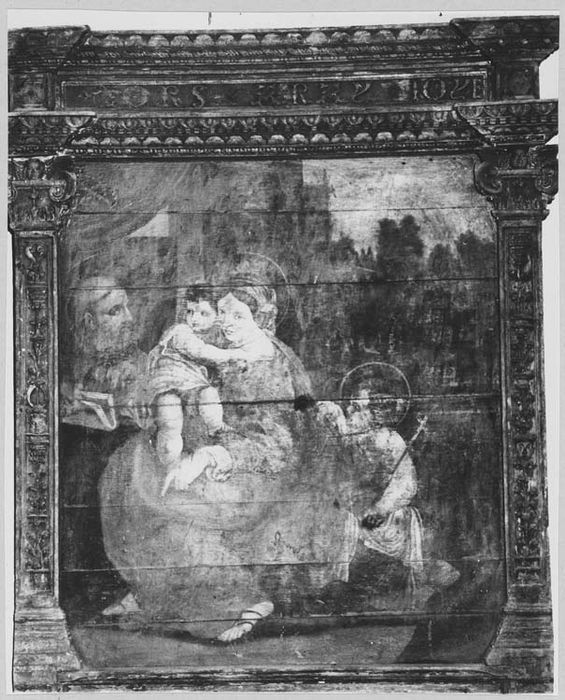 POP | Plateforme ouverte du patrimoinetableau : Vierge à l'Enfant avec saint Jean-Baptiste enfant et saint François d'Assise (ensemble tableau et cadre)