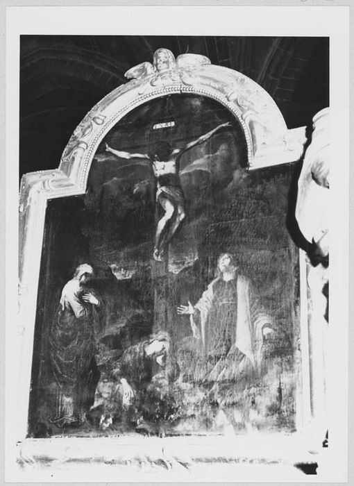 Arrêté : Christ en croix entre saint Jean, la Vierge et la Madeleine.