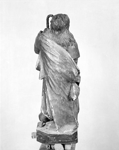sacristie, posée au sol (fixation à cadenas en 1976 ; son socle ayant été perdu, la statue n'a pas pu être remise en place après la réfection des enduits intérieurs de l'église)