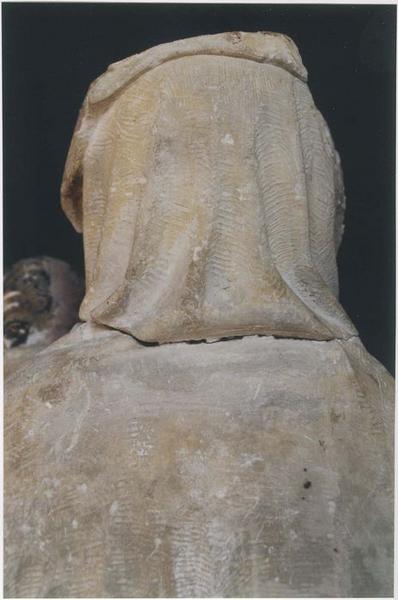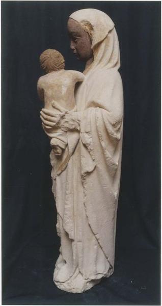 Bras droit de la Vierge et main gauche de l'Enfant mutilés. Oeuvre restaurée par Brigitte Estève en 1997 : dégagement de la polychromie des visages, nettoyage et conservation des traces de polychromie sur les vêtements.