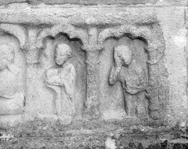 A l'intérieur de l'enfeu le tombeau est constitué par deux dalles : l'une verticale, à la base, sculptée en bas-relief, la seconde horizontale sur laquelle le gisant est sculpté en demi-relief.