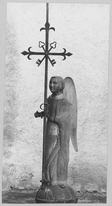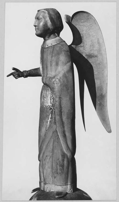 Cette statue d'ange du 13e siècle, placée au sommet de la flèche du clocher, était peut-être mobile et pouvait servir de girouette à l'origine. Elle a été immobilisée en 1618 par l'ajout d'une croix en fer, prolongée par la suite d'un paratonnerre, et n'a pas retrouvé sa mobilité lorsqu'ils ont été retirés.