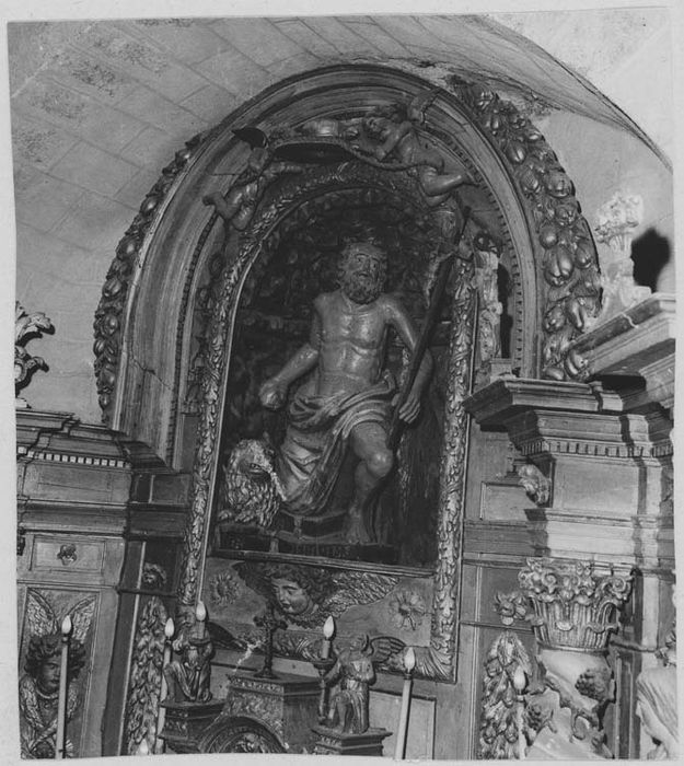 Oeuvre restaurée en 1953 (?) Bois vermoulu nécessitant une restauration. Etude préalable par Yves Gilbert en 2008.