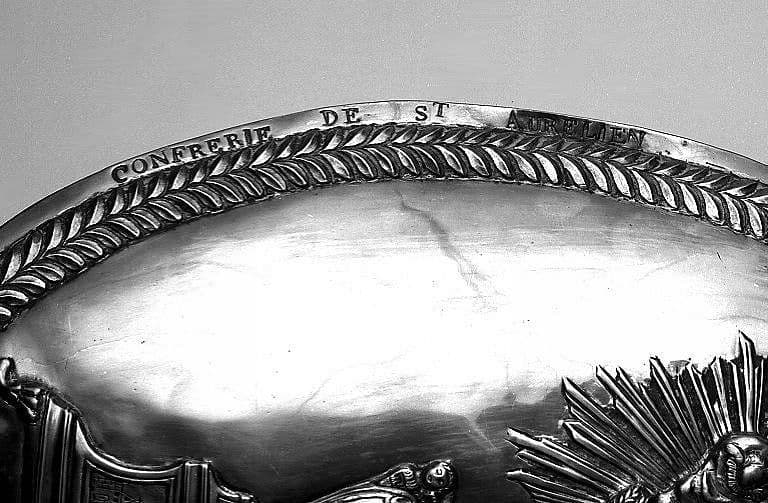 2 panonceaux de cierge de la confrérie de saint Aurélien : le Saint Sacrement